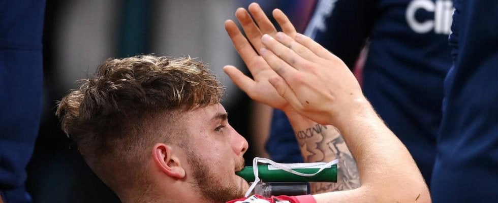 しかし、試合中に訪れたカウンターのチャンスでドリブルで持ち出すと、リーズのDFパスカル・ストライクがタックル。ボールを奪われたが、その際に左足首があらぬ方向へ曲がる事態となり、急遽試合が中断。ピッチ上で治療し、そのまま病院へと直行した。