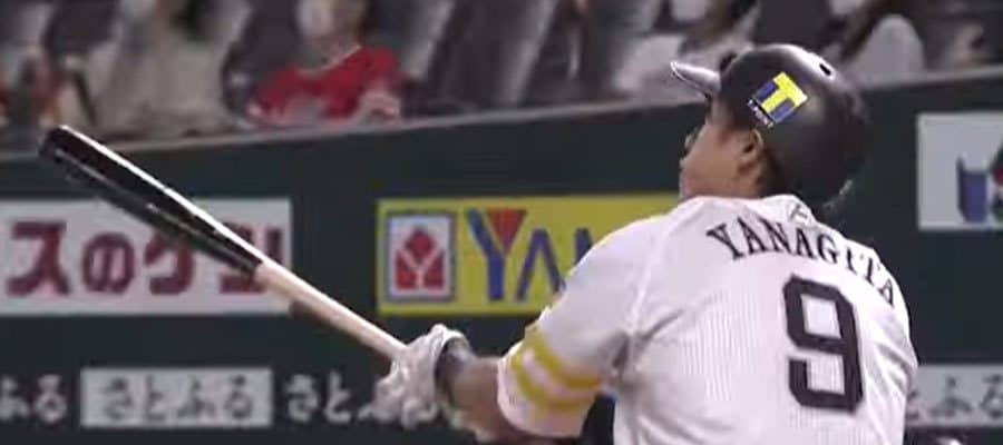 3点を追う2死二塁で打席に入ると、ロッテ美馬が投じた内角へのカットボールをフルスイング。打球は高々と舞い上がるとそのまま右中間ホームランテラスに着弾した。柳田は「少し詰まりましたが、オーバーフェンスとなり良かったです。栗原選手から教えてもらった、ドン・キホーテ作戦のおかげだと思います」と謎が深まるコメントを残した。