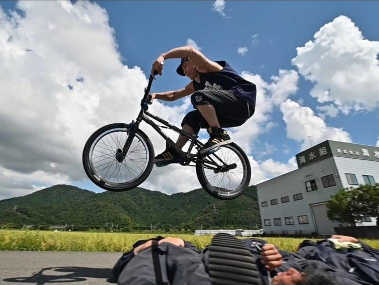 写真のライダーHidecco(筒井英章)はFAST(福井BMX協会)に所属する古株ライダー。独自のスタイルを貫く彼はストリート&フラットの両方を楽しんでいる。体験会等を行うにあたり「福井には自分よりもっと上手い人が沢山いる。今回興味を持った人がBMXを楽しんで、上手くなってくれると嬉しい。」と語っている。