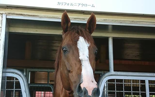種牡馬カリフォルニアクローム、現在はアロースタッドでけい養(ユーザー提供:シンディータカさん)