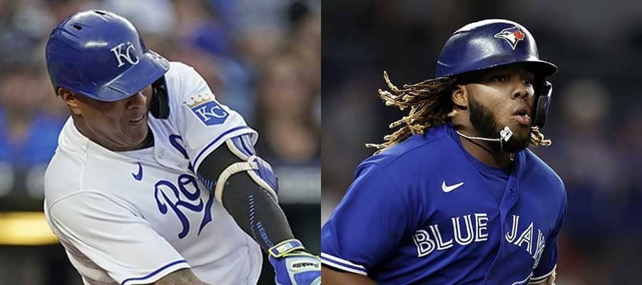ロイヤルズのサルバドール・ペレス(左)とブルージェイズのブラディミール・ゲレーロJr.【写真:AP】