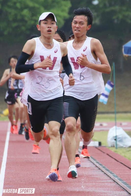 4月の早大競技会5000メートルでともに13分台を出した佐藤航(左)と菖蒲