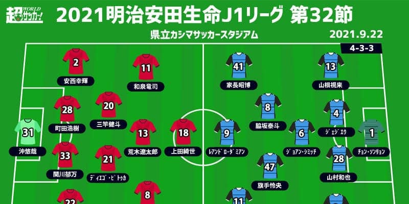 【明治安田生命J1リーグ第32節】 2021年9月22日(水) 19:00キックオフ 鹿島アントラーズ(7位/50pt)…