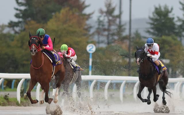 前日は晴れ・良馬場で行われていた金沢競馬場だが、この日は第1レース前から雨が降り続き、ときおり視界があまりきかないほど降りが強くなることもあった。それゆえ稍重でのスタートも、第2レースには重、第4レースでは不良と馬場状態が急激に悪化。水が浮くほどの馬場状態は、結果に少なからず影響したと思われる。