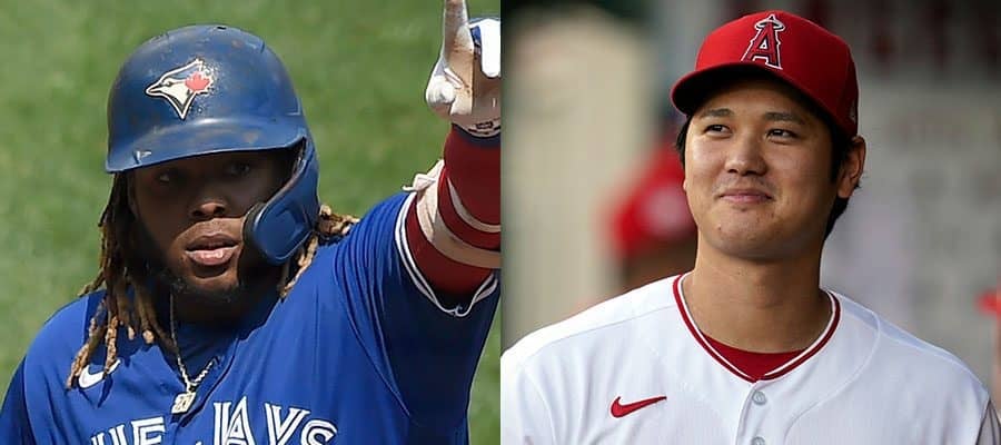 ブルージェイズのブラディミール・ゲレーロJr.(左)とエンゼルス・大谷翔平【写真:AP】