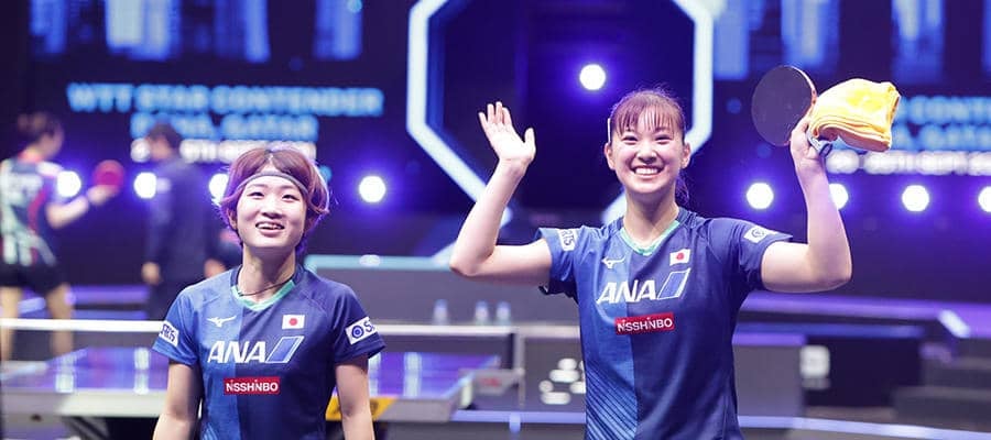 「WTTスターコンテンダードーハ」<9月20~25日>大会最終日の6日、女子ダブルス決勝で長﨑美柚(日本生命)/安藤みなみ(TOP名古屋)ペアがチョン・ジヒ/ヤンハウン(韓国)をストレートで下し、優勝を果たした。