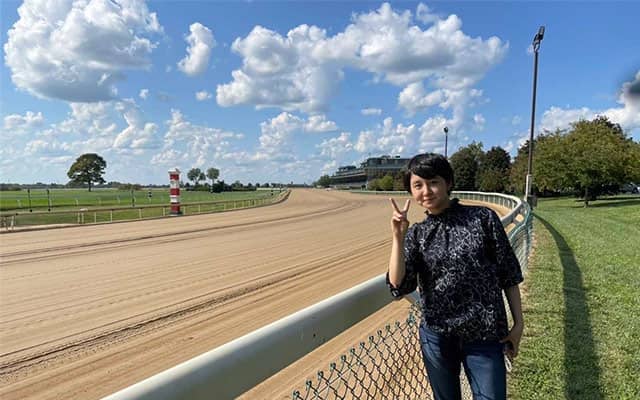 競馬場の馬場は“土”。触っても歩いても硬さを感じるまさに“土”で、日本のダートとはまったく違うものでした。JRAの競馬場とは違い、ダートコースの内側に芝コースがあり、日本とアメリカの競馬文化の違いも感じました。