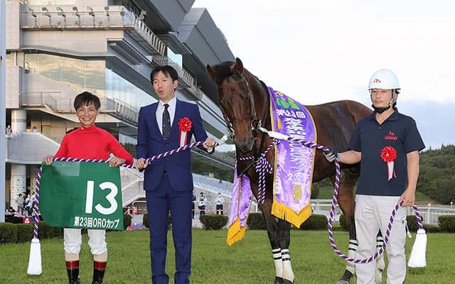 ジョッキーがうまく乗ってくれましたが、あらためて芝の馬だなと思いました。今後、地元のダートを使うか、JRAの芝に挑戦するか。オーナーとじっくり相談して決めたいと思っています」