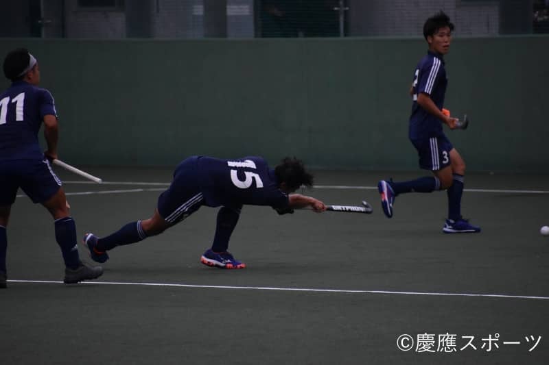 昨季3位の慶大は同7位の早大との開幕戦に挑んだ。序盤からボールを保持し積極的にゴールを狙うが決め手に欠ける時間が続いた。膠着状態で迎えた第3Q10分、慶大はP Cを獲得すると福田洸輔(政3・慶應)がシュートを決め先制に成功。その後、早大の猛攻もあったが粘り強く守り切り開幕戦を勝利で飾った。