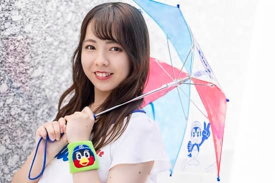 「グラウンドから見る景色はとってもキラキラしているんです! 特に7回ラッキーセブンでの東京音頭は皆さんと一緒に傘を振るのですが、一体感を感じることができて楽しいです」