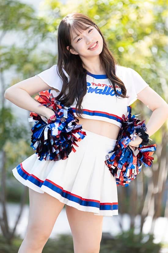 「いつもファンの皆さんと一緒にチームを応援できることがとても楽しく、うれしいです! 小さい頃から培ったチアスピリットを生かして勝利に貢献できるよう、熱いパッションを持って"応燕"します! 日本一になるまで一緒に"応燕"していきましょう」