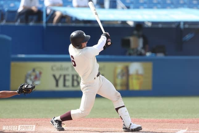 前日は23得点と大量点を挙げ、今季初白星を挙げた早大。連勝を目指して、東京六大学秋季リーグ戦(秋季リーグ戦)東大2回戦に臨んだ。この日も打線は大爆発。初回からとの2者連続本塁打で先制すると、3回までに7得点を挙げる猛攻を見せる。それ以降も6回にはリーグ戦新記録となる8者連続安打を放つなど、終わってみれば19得点を挙げた。また、2試合連続で先発全員安打全員得点も達成し、リーグ戦史上初となった。投げては先発のが東大打線相手に完封し、2日連続の大勝となった。