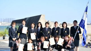 <写真・表彰式後写真撮影に応じた選手たち> 10月3日、新西宮ヨットハーバーにて2021年度関西学生ヨット女子選手権大会…