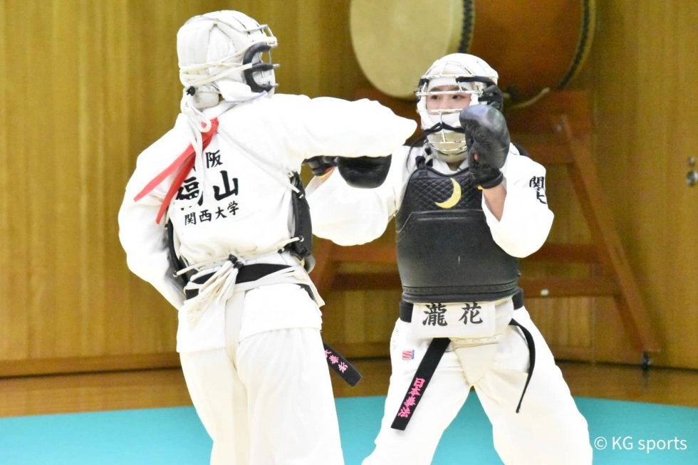 <写真・関大戦で躍動する瀧花> 10月3日、吹田市武道館「洗心館」にて、第24回西日本学生拳法選手権大会が開催された。関…