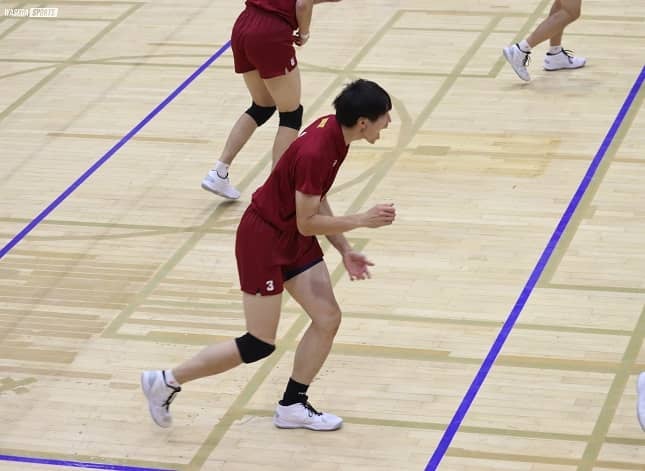 3セット目はスタートのメンバーを一部変更し、上條とセッターの仲濱陽介(スポ4=愛知・星城)を起用した。序盤から水町のノータッチエースや、上條の相手ブロックを置き去りにするクイックで点数を重ねていく。リベロの荒尾怜音(スポ2=熊本・鎮西)のフライングレシーブから重藤がエンドライン近くの長いスパイクを決めきり、相手にタイムアウトを取らせる。その後も流れは早大にあった。ブロックが機能し、相手のスパイクミスを誘う。さらに、ラリーでは相手リベロの好レシーブが続いたが、ブロック3枚でシャットアウトし、12-5に。流れを渡さず、相手のタイムアウトを使い切らせた。その後も荒尾の献身的な守備も後押しして、サイドアタッカーを中心に順調に得点を重ねていく。セット終盤に近づくと重藤のアタックラインを刺すクロススパイクでさらに勢いづいた。重藤のノータッチエースやミドルブロッカー岩本大吾(スポ3=兵庫・市尼崎)の強烈なクイックなどで5連続得点し、マッチポイントに。このセットから途中出場したアウトサイドヒッターの平田が最後の1点を決め、25-10に。早大ベンチからひときわ大きな声が上がった。