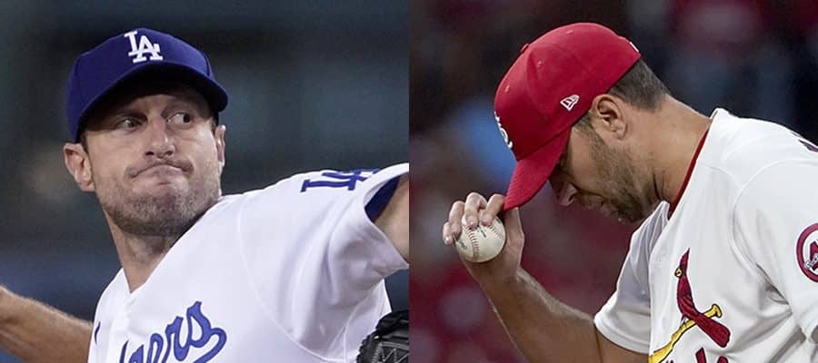 ドジャースのシャーザー(左)とカージナルスのウェインライト【写真:AP】