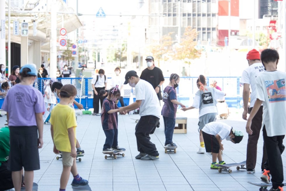 また、初心者を対象としたスケートボードスクールも同時に開催された。スケートボードを体験するために多くの子どもたちが詰めかけ、にぎわいを見せた。