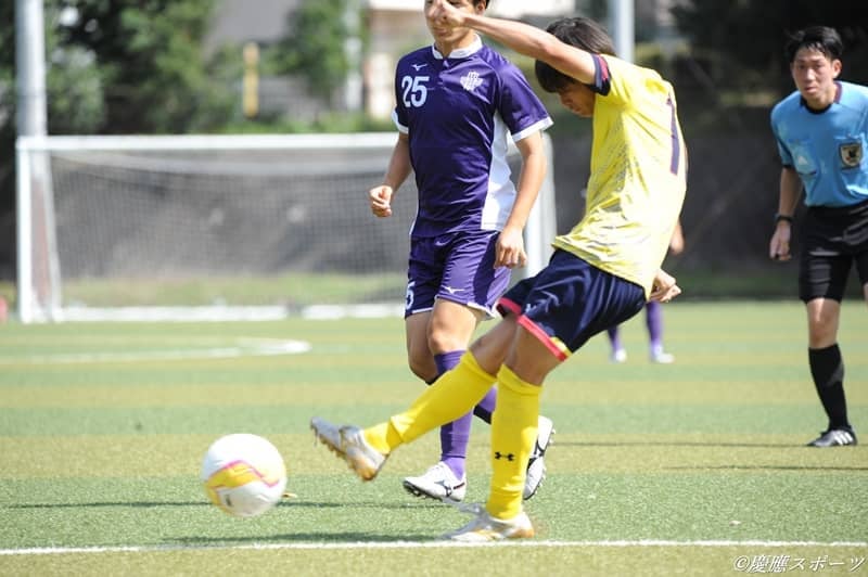 連勝とはならなかった前節、後期初勝利を飾った慶大は王者・明大と対戦した。連勝をかけて臨んだ試合は序盤から一進一退、互角以上の勝負を見せたが32分にPKから先制を許してしまう。後半も失点を重ね、終了間際に塩貝亮太(商2・暁星)のゴールで1点を返すも反撃遅く連勝とはならなかった。
