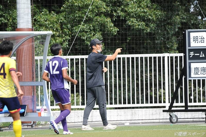 ーー中央ではショートカウンターからの崩しで得点していたのですが、慶應が自陣からビルドアップする際、サイドを起点にチャンスを作ることが多かったように思います。特に右サイドでは日川選手を空中戦のターゲットにしたり、彼のロングスローからの展開が見られました。その際FWの選手がサポートに寄って、中央に選手がいない又は間に合わずボールを奪われてしまうといった場面が散見されました