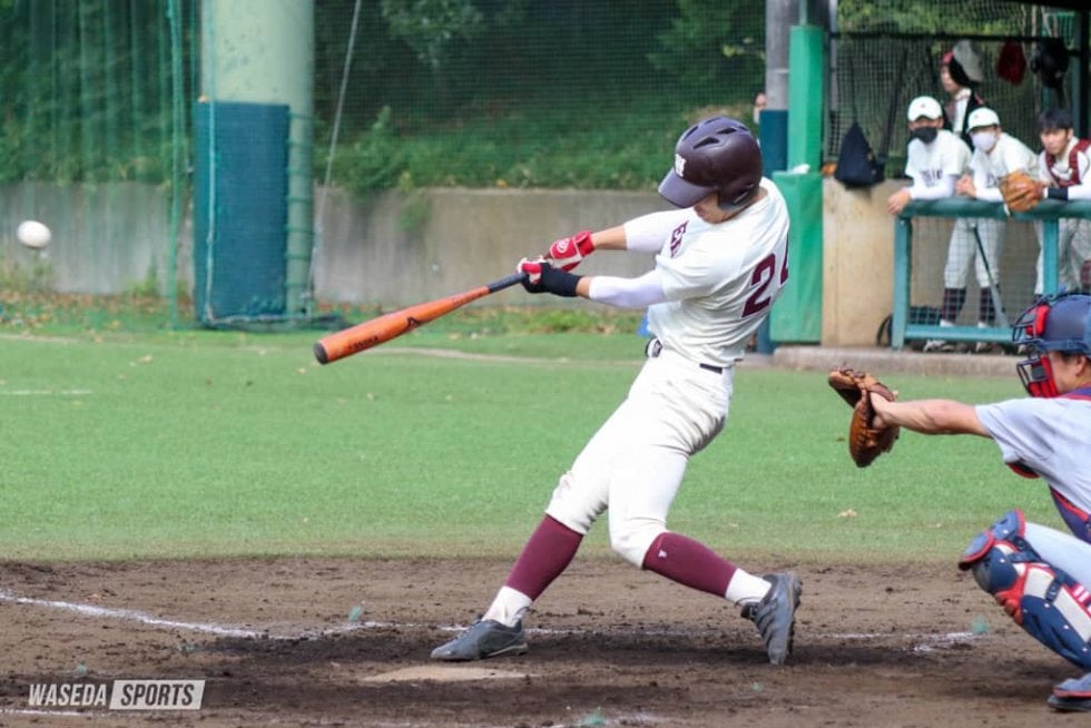 一方、反撃したい打線は慶大の好投手・日比谷元樹(2年)の前に、3回までわずか1安打に抑えられる。しかし4回、先頭の渡部主将が左翼方向へソロを放ち、反撃の狼煙(のろし)を上げる。だが、その後は好機を作ることができないまま試合が進行した。ようやく好機を作ったのは7回だった。先頭の川原崚(商3=東京・早実)が内野安打で出塁すると、須能浩太郎副将(商4=東京・早実)が犠打を成功させ、1死二塁とする。この好機で打席に入ったのは6番・新井健太(商3=東京・早大学院)。新井は左翼方向へ安打性の打球を放ったが、左翼手の守備に阻まれ得点には至らず。その後は継投で逃げ切りを図る慶大投手陣に対して突破口を見出せず、そのまま試合終了。秋季リーグ戦で好調を維持している慶大に対して大きな1勝を献上することとなった。