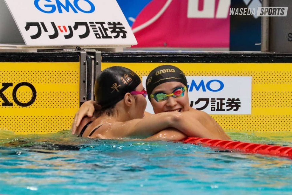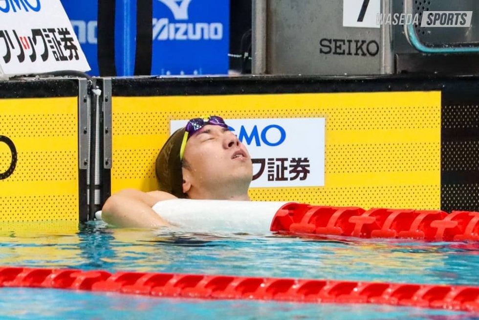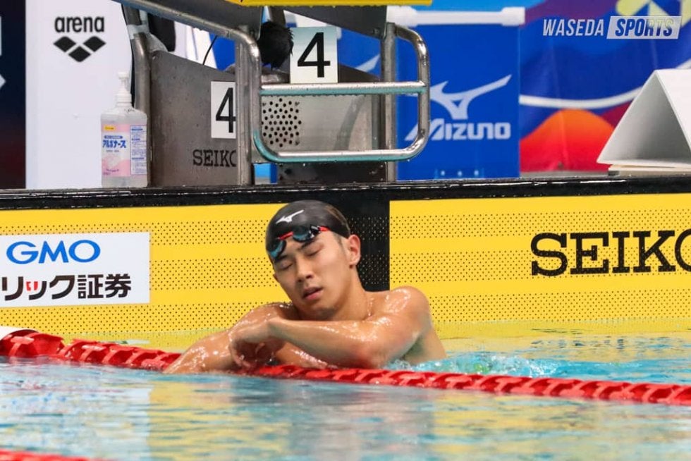 早稲田大学に点数で貢献できたことをうれしく思います。応援が力になりました。8月のころは絶不調でしたが、泳ぎのことを考えることが多くなり、徐々に調子は上がってきていました。2年ぶりのベスト更新、目標(表彰台)を上回る優勝ができてよかったです。