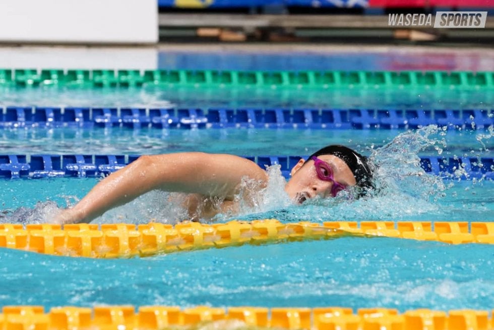 大会3日目では、ルーキー松本信歩(スポ1=東京・東学大付)が金メダルを獲得。早大のニューヒロインが誕生した。一方、連覇を狙った田中大寛(スポ2=大分・別府翔青)は悔しい3位。さらに、男子4×100メートルメドレーリレーも連覇の夢は果たされなかった。なお、現在の総合順位は男子が211.5点で3位。女子は4位(188.0点)と目標の3位まであと一歩に迫っている。