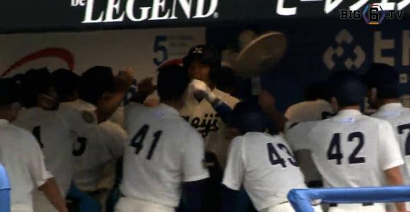 明大打線が22安打22得点の猛攻で快勝。1年生左腕・藤江も5回2安打無失点の好投を見せた。