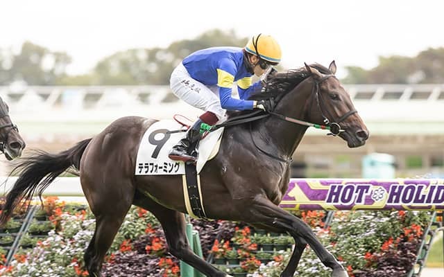 10日、東京競馬場5Rで行われた新馬戦(2歳・芝2000m・12頭)は、2番手でレースを進めた鮫島克駿騎手騎乗の7番人気テラフォーミング(牡2、美浦・相沢郁厩舎)が、直線で先頭に立ち、外から追った1番人気チェルノボーグ(牡2、栗東・藤原英昭厩舎)を振り切って、これに3/4馬身差をつけ優勝した。勝ちタイムは2分04秒4(良)。
