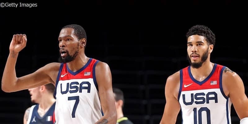 東京オリンピックで共闘したデュラント(左)とテイタム(右)[写真]=Getty Images