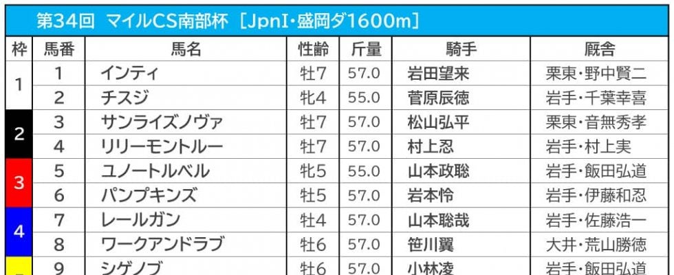 【MCS南部杯/枠順・データ予想】アルクトスは近年不振の8枠、好条件のエアスピネルを軸に相手探し