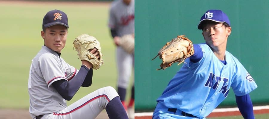 京都国際・森下瑠大(左)と日体大・矢澤宏太【写真:荒川祐史、川村虎大】