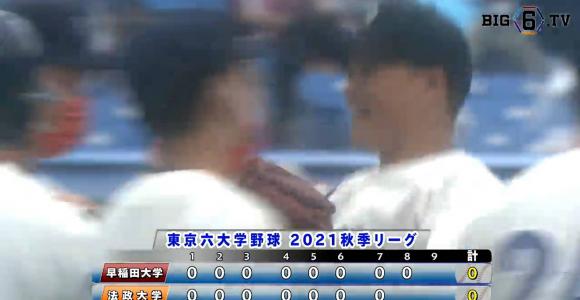 中でも、法大・三浦は、5回まで投げて一人の走者も許さない完璧な投球を見せる。一方の早大・徳山も5回まで2安打8奪三振と力のある直球を軸に法大打線を封じる。