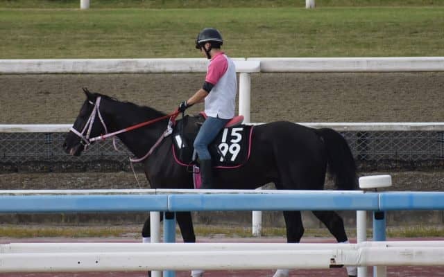 本馬について「馬格があって、血統の良さも感じる、素質の高そうな馬。ただ、もう少し走りに締まりの欲しい感じもするので、今週追い切ってみてから、その後の予定を決めていこうと思います」と松下武士調教師。