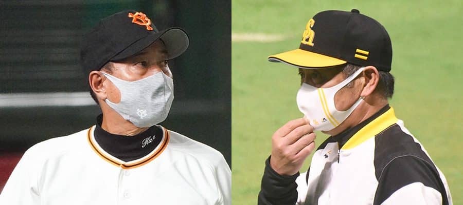 巨人・原監督(左)とソフトバンク・工藤監督【写真:荒川祐史、藤浦一都】
