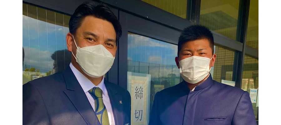 ロッテからドラフト1位指名され、井口監督から挨拶を受けた市立和歌山高・松川虎生【写真:球団提供】