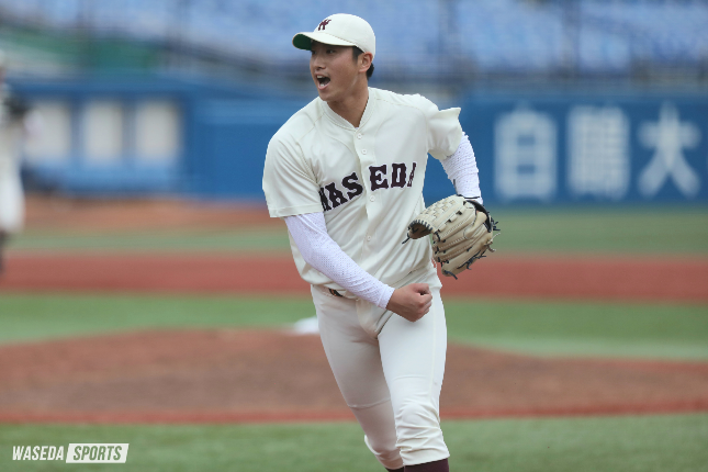 雨天の影響で、1時間遅らせての開始となった東京六大学秋季リーグ戦(秋季リーグ戦)法大2回戦。試合は早大先発・西垣雅矢(スポ4=兵庫・報徳学園)と法大先発・山下輝(4年)の投げ合いとなる。