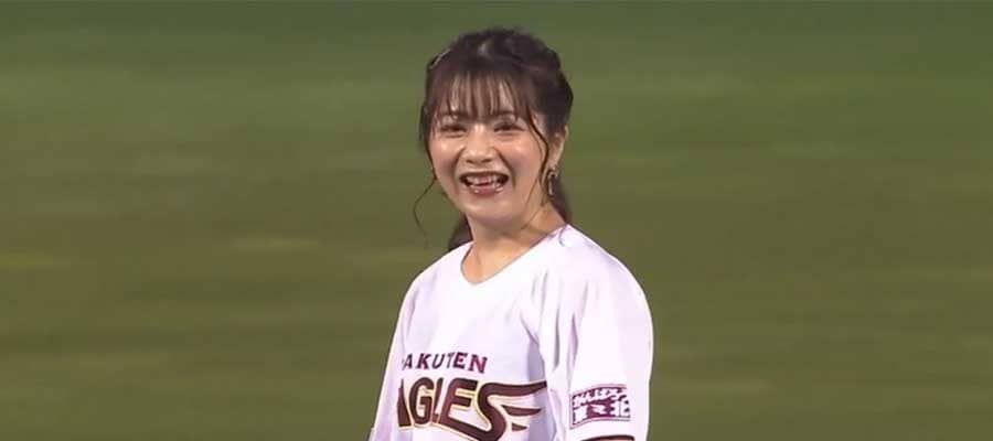明坂聡美さんが始球式に登場…笑顔を振りまき、投げた瞬間に大絶叫■楽天 2ー1 ソフトバンク(13日・楽天生命パーク) 人…