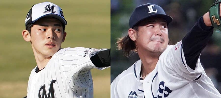 ロッテ・佐々木朗希(左)と西武・高橋光成【写真:荒川祐史】