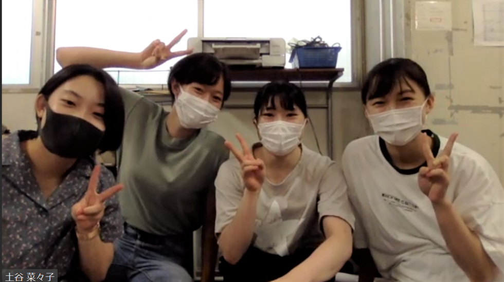 右から土谷、天本、藤平、益田。学年の垣根を越えて会話が弾む