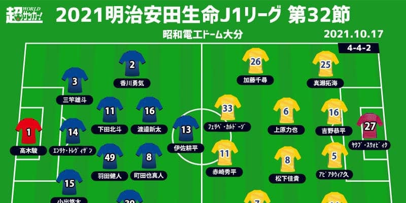 【明治安田生命J1リーグ第32節】 2021年10月17日(日) 14:00キックオフ 大分トリニータ(19位/24pt…