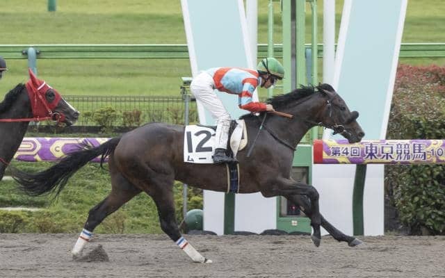17日、東京競馬場4Rで行われた新馬戦(2歳・ダ1300m・15頭)は、中団でレースを進めた菅原明良騎手騎乗の8番人…