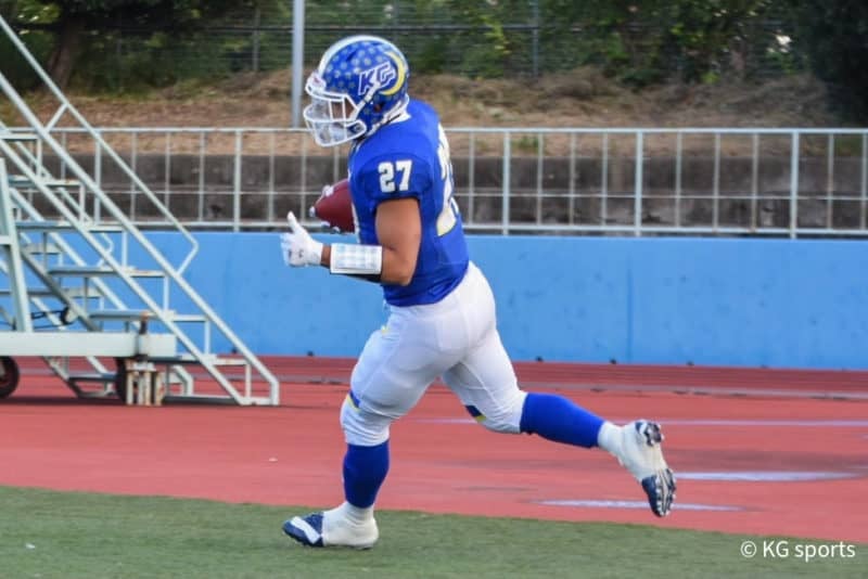<写真・TDを挙げた齋藤>試合後のコメント大村和輝監督「相手のQBをいかに止めるかというところで、ある程度はできたと思う…
