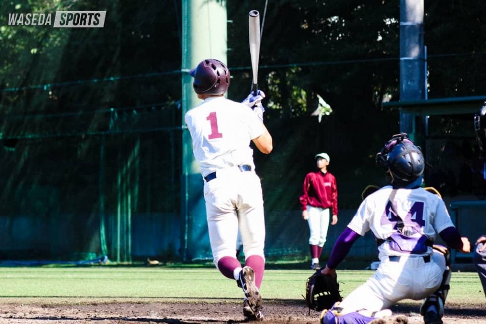 寒空の下、早大は白熱した戦いを制した。関東地区大学・社会人王座決定戦(関東王座)出場へ向け希望をつなぐため、向かえた明大2回戦。序盤に2点の先制を許すも、2回に篠原大成(教4=大阪・早稲田摂陵)のスクイズで逆転に成功する。さらに3回の関大輝副将(基理4=茨城・江戸川学園取手)のソロでダメ押し点を獲得した。一方の投手陣は、3回以降は3投手の継投策が奏功しゼロ封。4年生選手が意地を見せ、待望の白星を獲得した。