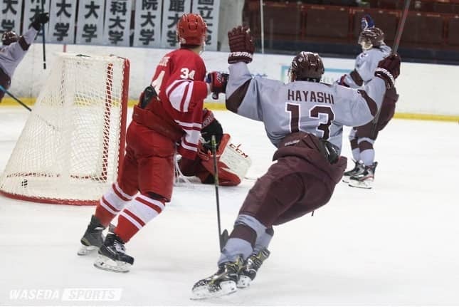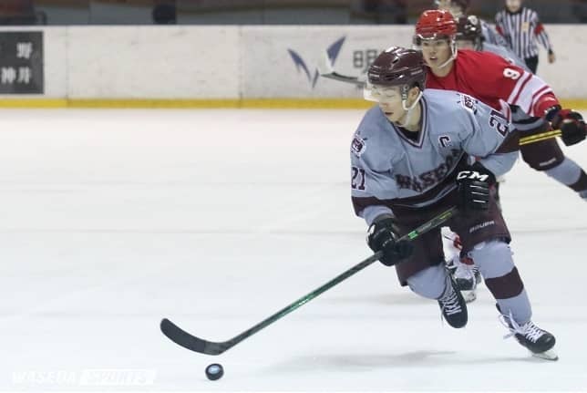 大学交流苫小牧大会が中止となり八戸での合宿を終え初の公式戦となる関東大学リーグ戦特別大会(リーグ戦)。初戦の相手である日大に第1ピリオド(P)で先制点を決められる。しかし第2P、同点に追いつくと、最終Pで逆転。その後2点を追加して早大が4―1で勝利し、リーグ戦を白星スタートとした。