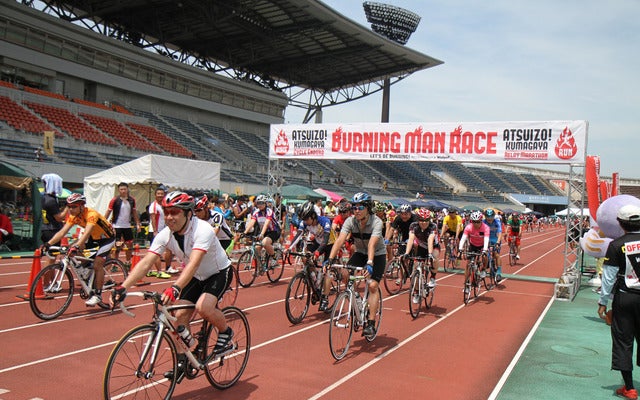 「バーニングマン・レース」は、夏に猛暑を記録する“日本有数の暑い街”として知られる埼玉県熊谷市を舞台に行われるレースイベントだ。自転車の耐久レース(サイクルエンデューロ)と、ランのチーム耐久レース(リレーマラソン)を開催。サイクルエンデューロは2時間の部、3時間の部、5時間の部、ランはリレーマラソン(42.195km)、4周回時の通過タイムを競う個人ラン・ペアランを行う。