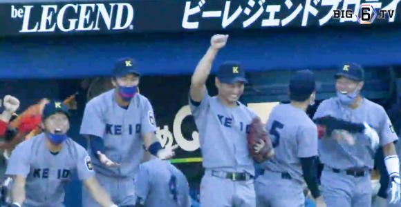 一方の慶大も7回裏、8回裏と続けて得点圏に走者を出すも、法大・山下が粘りを見せ、こちらも1点が遠い。