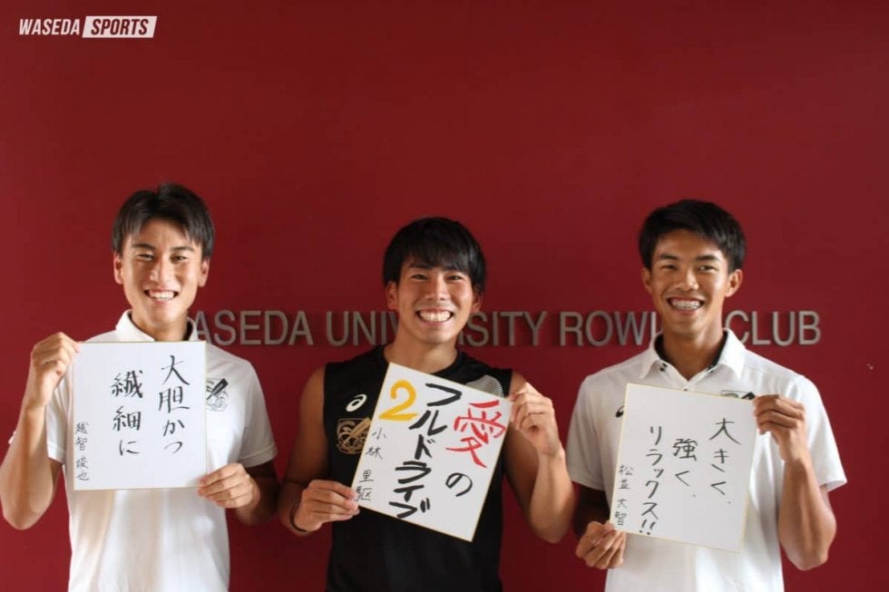第2回に登場するは、男子エイトに出場する越智竣也(スポ3=愛媛・今治西)、小林里駆(スポ3=静岡・浜松西)、松並大智(…