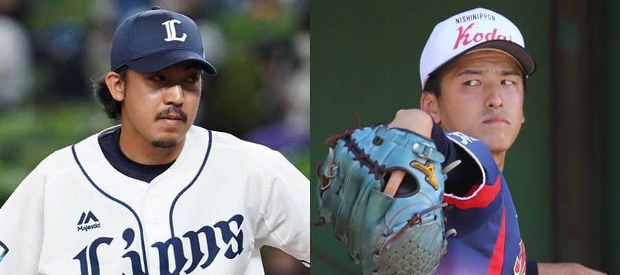 西武・小川龍也(左)とドラフト1位の西日本工大・隅田知一郎【写真:荒川祐史、福谷佑介】