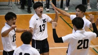 <写真・得点後、輪になって喜ぶ選手たち> 10月23日、2021年度関西大学バレーボール連盟秋季リーグ6戦目が行われた。…