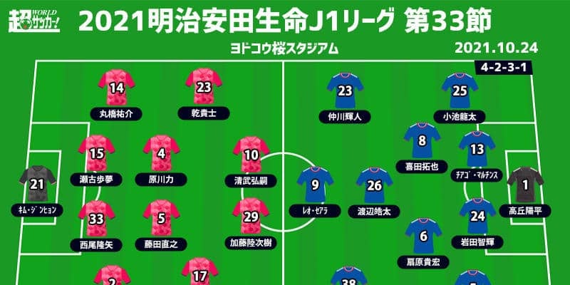 【明治安田生命J1リーグ第33節】 2021年10月24日(日) 19:00キックオフ セレッソ大阪(12位/39pt)…